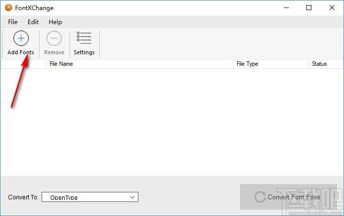 2、点击AddFonts,添加字体,选择需要进行转换的字体,添加至软件,由于小编电脑没有字体文件,无法添加