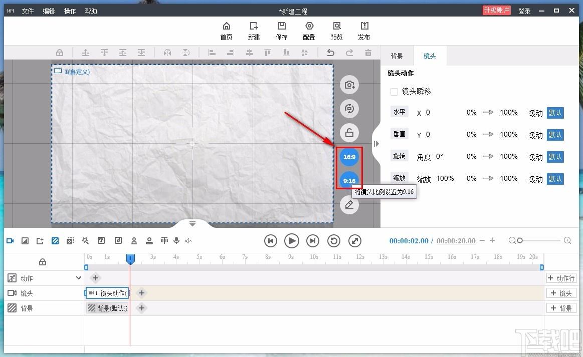 6、接着在镜头设置的这里可以选在将镜头的比例设置为16:9或者9:16